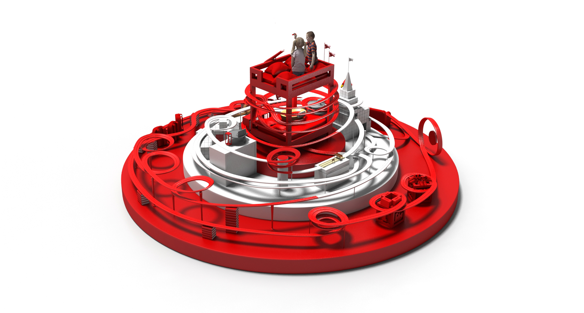 we created a giant interactive race track incorporating all of the latest Cars 3 gear.