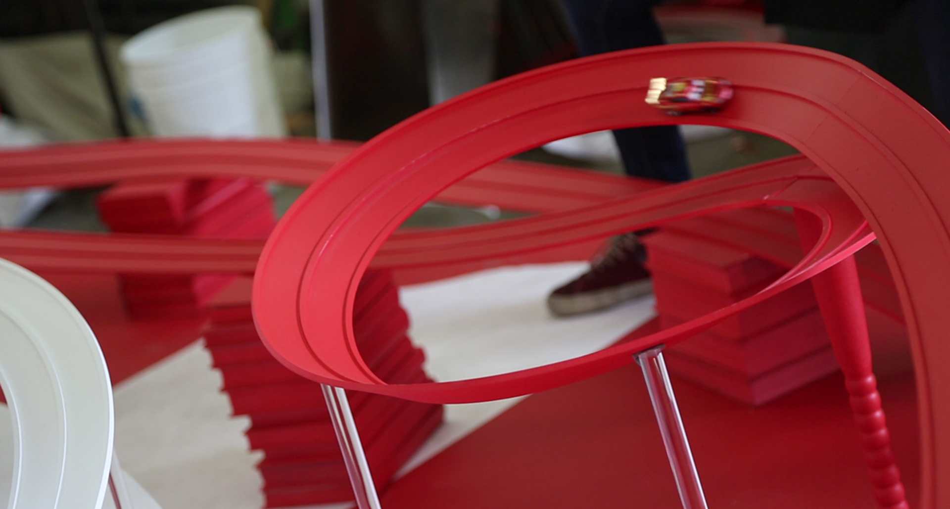When we finished our 14’ x 20’ bedroom inspired track we let real kids take it for a test drive. We then filmed a 30 second film of real Lightning McQueen and Cruz Ramirez cars racing around the track.